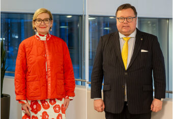 Nelihenkinen perhe syö yhdessä aamiaista pöydän ääressä